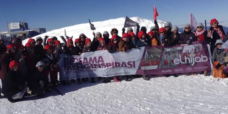 Sebanyak 40 mitra bisnis Elhijab turut mengikuti pelesir bertajuk Halal Trip, mengelilingi benua Eropa menuju Swiss, Jerman, Slovakia, Austria, dan Republik Ceko selama lebih kurang 10 hari.