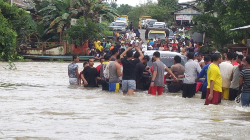 "Banjir makin parah, ketinggian air di jalan raya sudag mau satu meter. Kita khawatir air makin tinggi karena hujan masih turun," ujarnya.