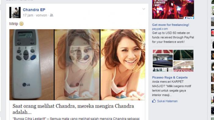 Demikian pula dengan akun Chandra EP yang meng-upload gambar remot AC. Ternyata, oleh aplikasi ini gambar tersebut dianggap mirip dengan Bunga Citra Lestari (BCL).