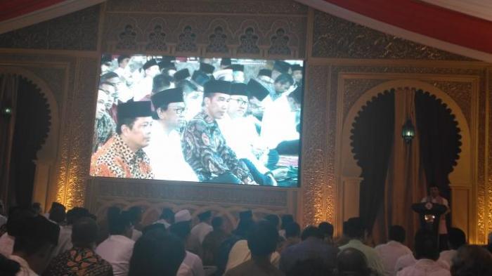 Menutup sambutannya, Oesman Sapta pun bertanya kepada seluruh tamu yang hadir apakah setuju jika Jokowi berbuka bersama di sana dulu sebelum mengikuti buka puasa bersama Wapres.