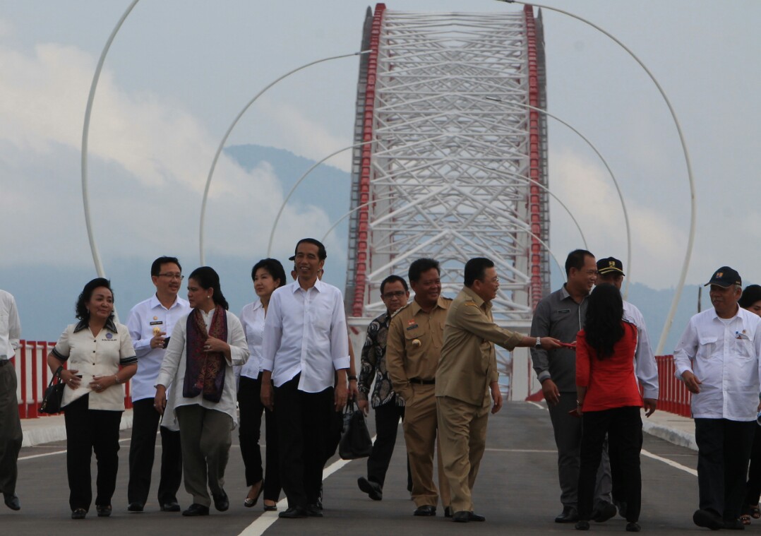 Pemandangan alam dengan berlatarbelakang perbukitan, menambah keindahan jembatan yang baru diresmikan Presiden RI, Ir Joko Widodo pada 22 Maret 2016 silam.