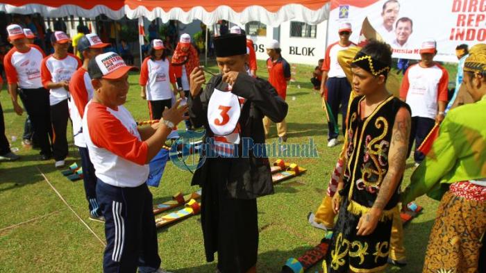Dalam rangka menyambut HUT Kemerdekaan Republik Indonesia ke 71, warga binaan Lembaga Permasyarakatan (Lapas) Klas IIA Pontianak menyanyikan lagu Hari Merdeka secara bersama-sama, dan lomba terompah di Lapas Klas IIA Pontianak, Jl Adisucipto, Kubu Raya, Kalimantan Barat, Senin (15/8/2016) pagi. Kegiatan ini serentak dilaksanakan seluruh Indonesia oleh Kementerian Hukum dan HAM (Kemenkumham) untuk memecahkan rekor MURI menyanyikan lagu Hari Merdeka serta lomba balap terompah. Para peserta lomba juga menggunakan pakaian adat seperti, Dayak Melayu, Tionghoa, Madura, Jawa dan Bugis. TRIBUN PONTIANAK/DESTRIADI YUNAS JUMASANI