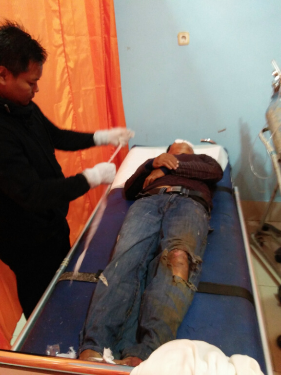 Warga yang menyaksikan peristiwa itu langsung memberikan pertolongan kepada seorang pengendara yang terjatuh ke parit lantaran menabrak tiang jembatan.