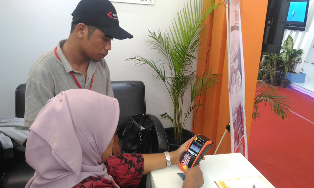 Setiap pengunjung stand akan mendapatkan informasi menarik terkait produk bank berlogo 46 ini. Satu di antaranya informasi menjadi agen laku pandai.