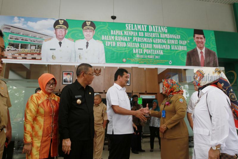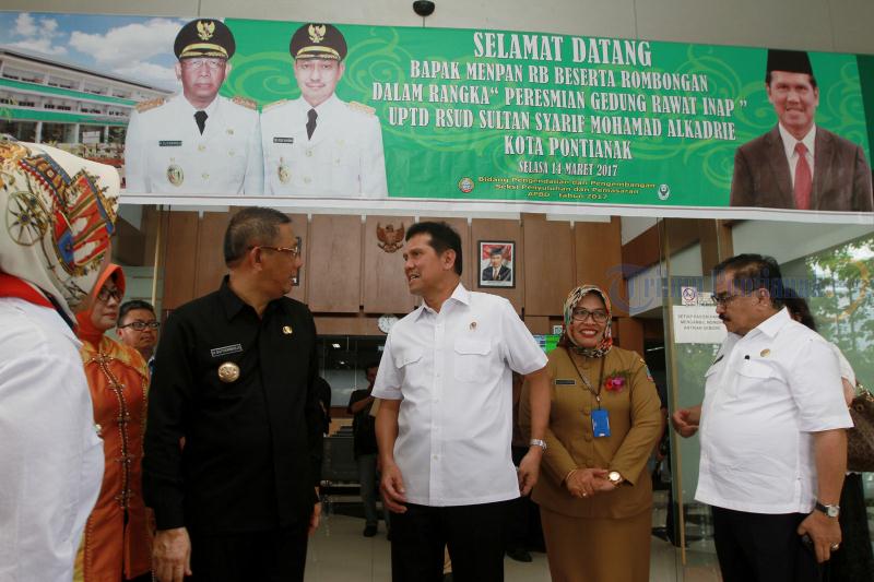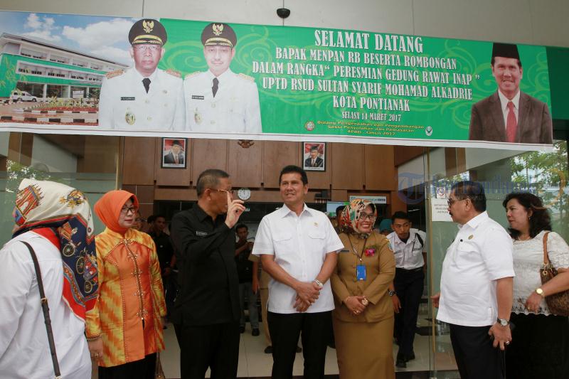 Menteri Pendayagunaan Aparatur Negara dan Reformasi Birokrasi (PANRB), Asman Abnur bersama rombongan saat menyambangi RSUD Sultan Syarif Mohamad Alkadrie,jalan Kom Yos Sudarso,Pontianak, Kalimantan Barat, Selasa (14/3/2017). kedatangan Asman Abnur kali ini untuk meresmikan gedung Rawat Inap RSUD SSMA.TRIBUN PONTIANAK / ANESh VIDUKA