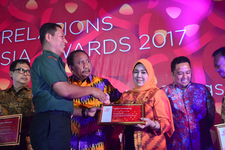 Penghargaan PR Indonesia Awards 2017 yang diberikan oleh PR Indonesia ini diserahkan oleh Kapuspen Mabes TNI, Mayor Jenderal TNI Wuryanto kepada Asisten Administrasi Umum Sekretariat Daerah Kota Pontianak, Hilfira Hamid di Ballroom Hotel Harris Sunset Road, Bali, Jumat (24/3/2017).