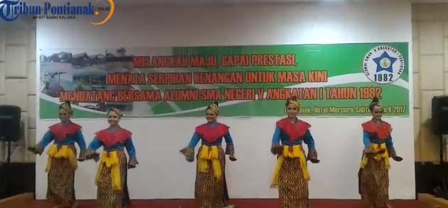 TRIBUNPONTIANAK.CO.ID, PONTIANAK - Persembahan tarian selamat datang dari Sanggar Bougenville menghibur para alumni yang hadir dalam acara Reuni Akbar SMAN 5 Pontianak Angkatan Pertama Tahun 1982 yang digelar di Mercure Hotel Pontianak, Sabtu (1/4/2017) sekitar pukul 14.00 WIB.