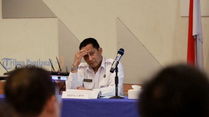 TRIBUNPONTIANAK.CO.ID,PONTIANAK - Kepala BNN RI Komjen Pol Budi Waseso hadir memberikan arahan dan beberapa wejangan kepada jajaran anggota BNNP dan Kepala BNNK di Hotel Golden Tulip, Senin (17/4/2017) sore.