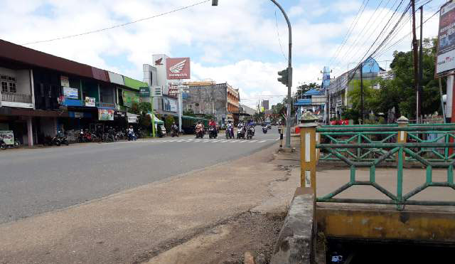 Arus lalu lintas di Jl Jenderal Sudirman, Kecamatan Kapuas, Kabupaten Sanggau saat ini didominasi kendaraan roda dua, Jumat (12/5/2017), pukul 11.03 Wib.