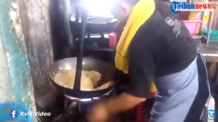 Rekaman tersebut menunjukkan sebuah warung nasi goreng yang sederhana.