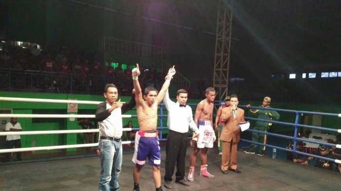 TRIBUNPONTIANAK.CO.ID - Pelatih Tinju Kalbar, Damianus Yordan mengatakan Ari Agustian menang KO ronde kedua atas Yopi Soaselan dari Sasana Raider Kostrad Cilodong, Sabtu (20/5/2017) malam.