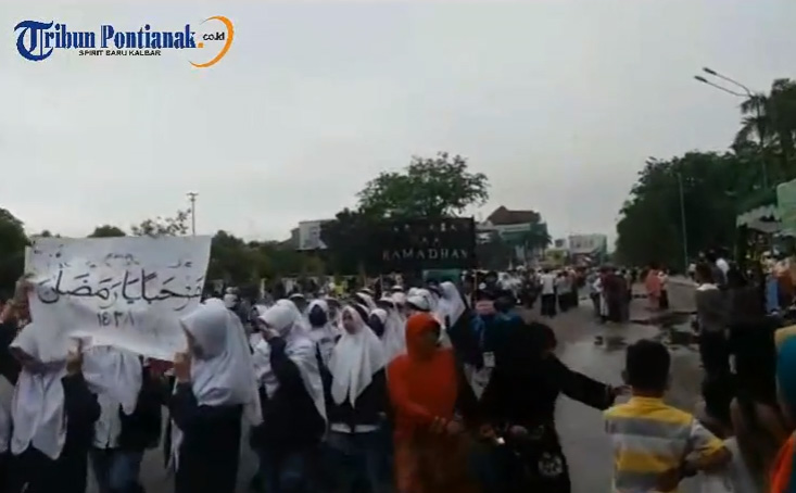 TRIBUNPONTIANAK.CO.ID, PONTIANAK - Ribuan masyarakat dan pelajar di Kota Pontianak meriahkan Pawai Akbar yang diselenggarakan Panitia Hari Besar Islam (PHBI) Kota Pontianak, Kamis (25/5/2017).