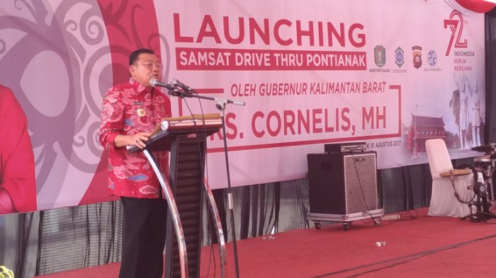TRIBUNPONTIANAK.CO.ID, PONTIANAK - Gubernur Kalimantan Barat, Cornelis melauncing Samsat Drive Thru Kota Pontianak di komplek Museum Kalbar, Jalan Ahmad Yani Pontianak, Kamis (10/8/2017).