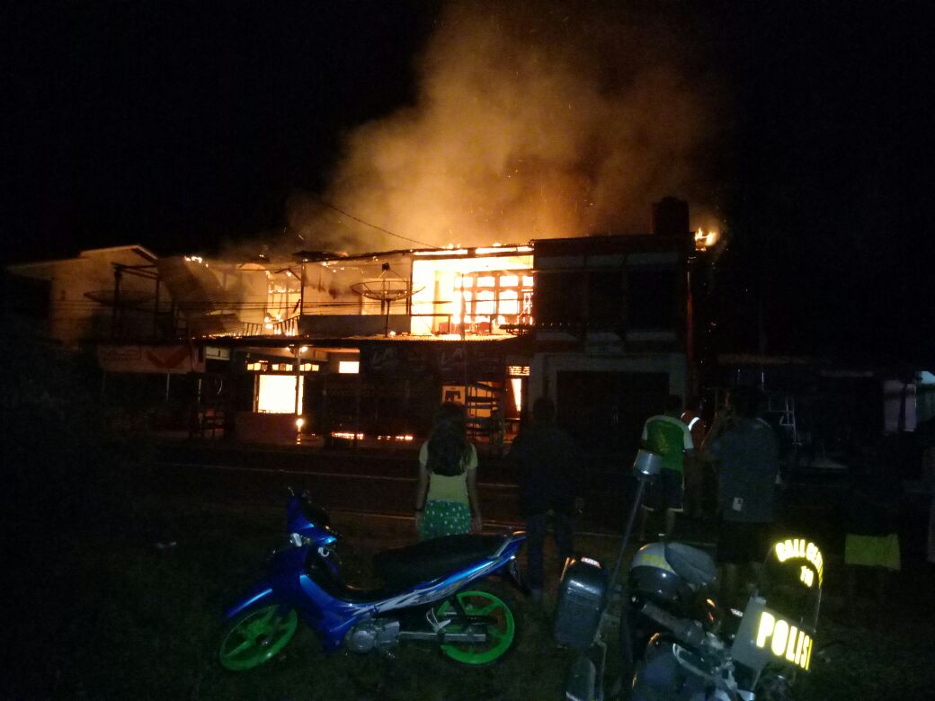 TRIBUNPONTIANAK.CO.ID, LANDAK - Empat unit ruko yang berada di Jalan Raya Ngabang-Sosok di Dusun Dengoan, Desa Tebedak, Kecamatan Ngabang terbakar pada Rabu (23/8) sekitar pukul 03.00 WIB.
