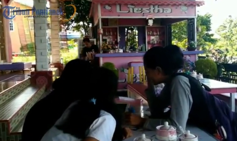 TRIBUNPONTIANAK.CO.ID, KAPUASHULU - Kedai Liestha yang mengusung konsep Hello Kitty memikat hati adik-adik manis yang umumnya masih pelajar.