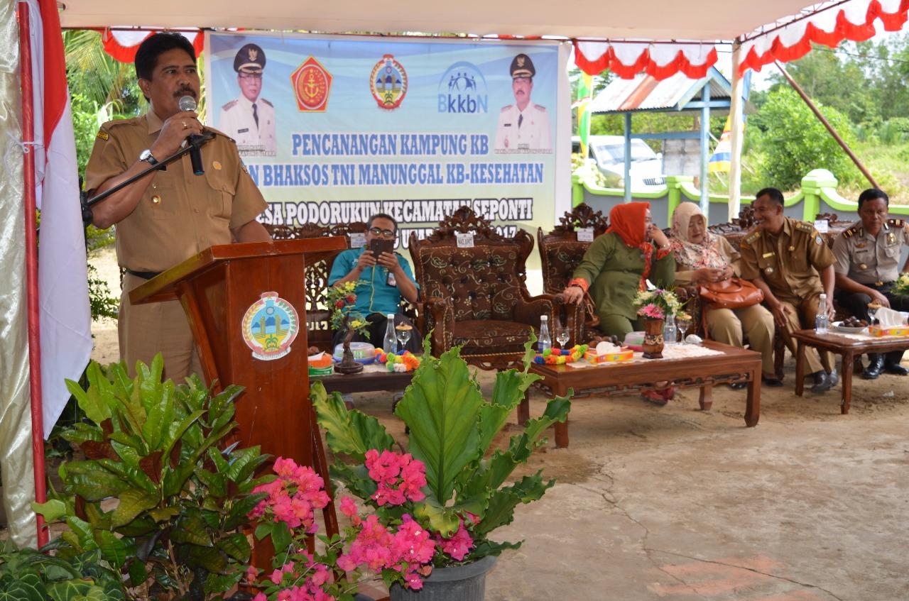 “Pembentukan Kampung KB merupakan tindak lanjut arahan Presiden Republik Indonesia agar manfaat program KB dapat lebih dirasakan secara langsung oleh masyarakat terutama yang berada di wilayah miskin, padat penduduk, tertinggal, terpencil dan wilayah nelayan di seluruh tanah air. Bapak Presiden juga telah memberikan arahan agar pelaksanaan program KB lebih fokus kepada masyarakat kurang mampu dan masyarakat tidak memiliki akses terhadap fasilitas kesehatan," terang Wakil Bupati Kayong Utara Idrus, menyampaikan sambutannya pada Pencanangan Kampung KB Baksos TNI Manunggal KB Kesehatan di Desa Podorukun, di Kecamatan Seponti Jaya, Selasa (3/10)