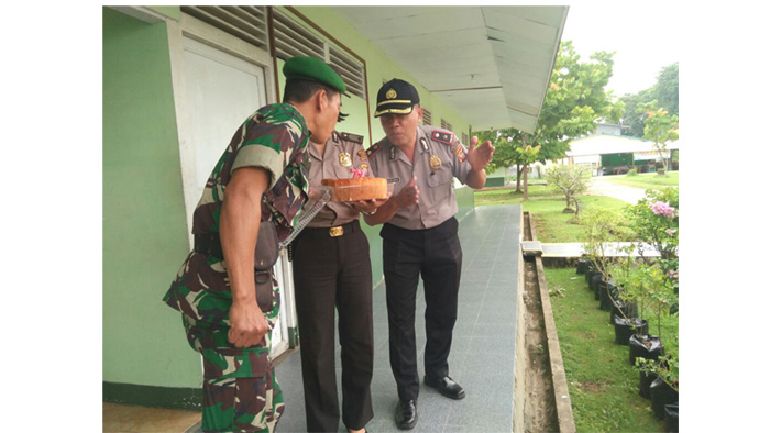 TRIBUNPONTIANAK.CO.ID, LANDAK - Momentum Hari Ulang Tahun (HUT) Tentara Nasional Indonesia (TNI) yang ke 72 pada tahun 2017, dimanfaatkan personel Polsek Ngabang dengan memberikan surprise kepada para personel Koramil Ngabang.