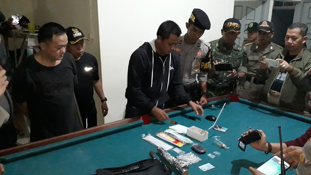 Dari rumah no 89, petugas menemukan dua unit meja bilyard, sebilah pisau, dua klip plastik transparan berisi serbuk kristal yang diduga narkoba jenis sabu-sabu.