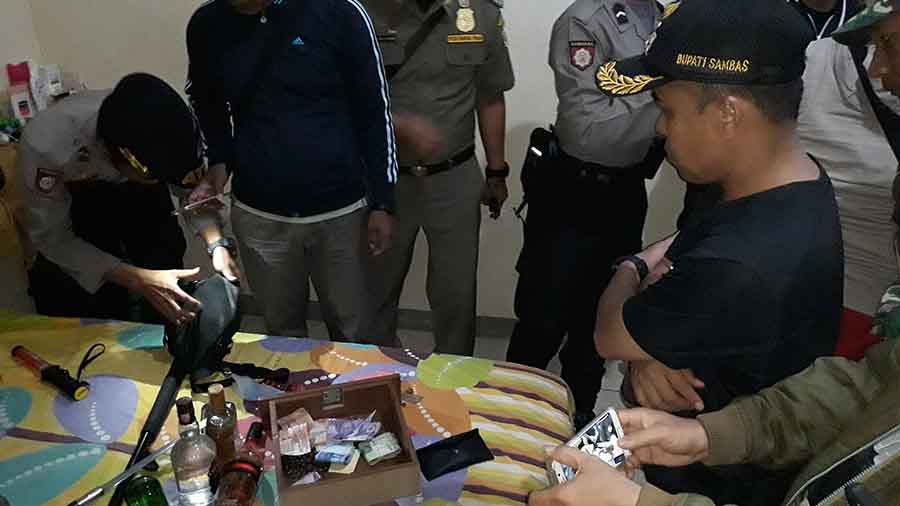 Sementara seorang wanita muda lainnya yang berada di luar kamar, juga tak luput dari pemeriksaan petugas. Darinya diketahui bahwa KTP yang dimilikinya, bukan berdomisili di wilayah Kecamatan Sambas.