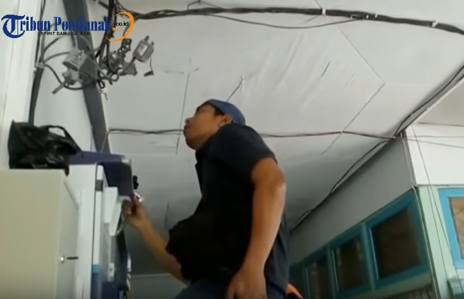 Saksi mata Eka Rusnita mengatakan sekitar pukul 12.45 WIB mendengar bunyi letupan dari atas plafon bangunan.