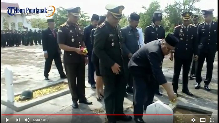 TRIBUNPONTIANAK.CO.ID, MEMPAWAH - Kapolres Mempawah AKBP Didik Dwi Santoso pimpin upacara ziarah di makam pahlawan putra bangsa, Mempawah dalam rangka hari pahlawan 10 November 2017, Jumat (10/11/2017)