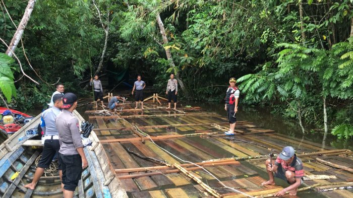 "Dilanjutkan kembali dengan menggunakan speedboat 15 PK dengan menyusuri sungai ke lokasi ditemukannya tumpukan kayu dengan jarak tempuh empat jam," papar Sunario.