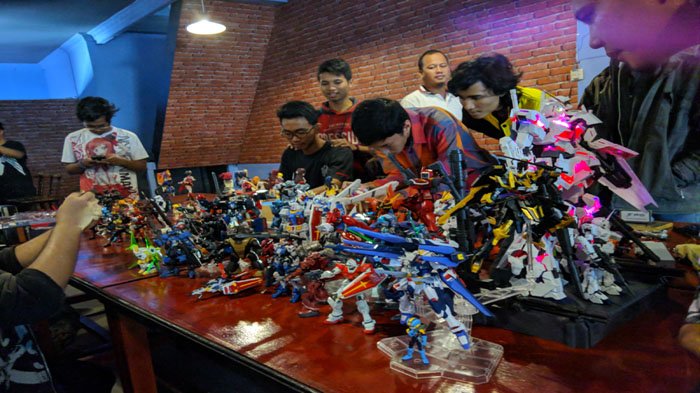 Mereka memajang mainan masing-masing, mulai dari Gundam, Simple Heroic Figure (SHF), nendroid, hingga Super Imaginative Chogokin (SIC).