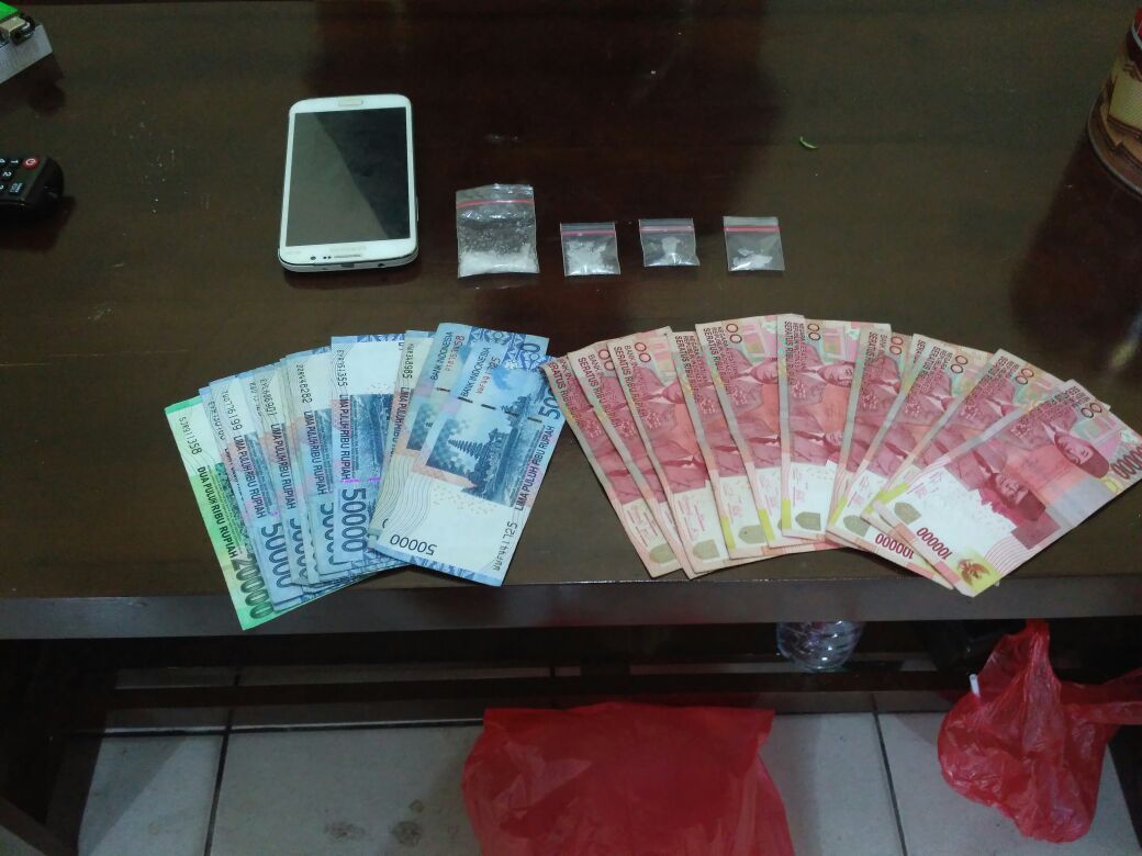 Saat geledahan petugas menemukan barang bukti beberapa bubuk kristal putih yang diduga sabu