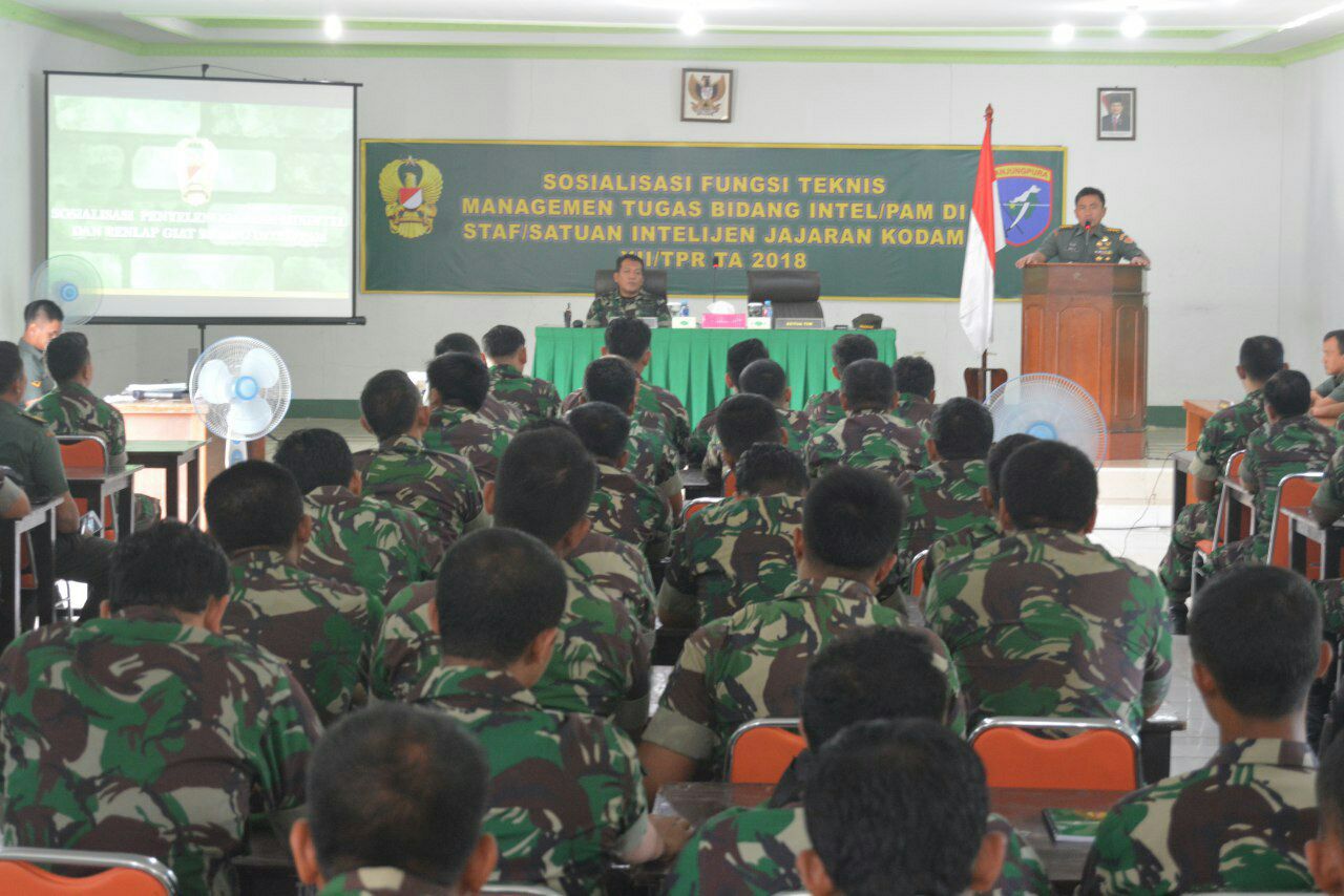 Komando Daerah Militer (Kodam) XII/Tanjungpura menyelenggarakan kegiatan Sosialisasi Fungsi Teknis Manajemen Tugas Bidang Intel Pengamanan