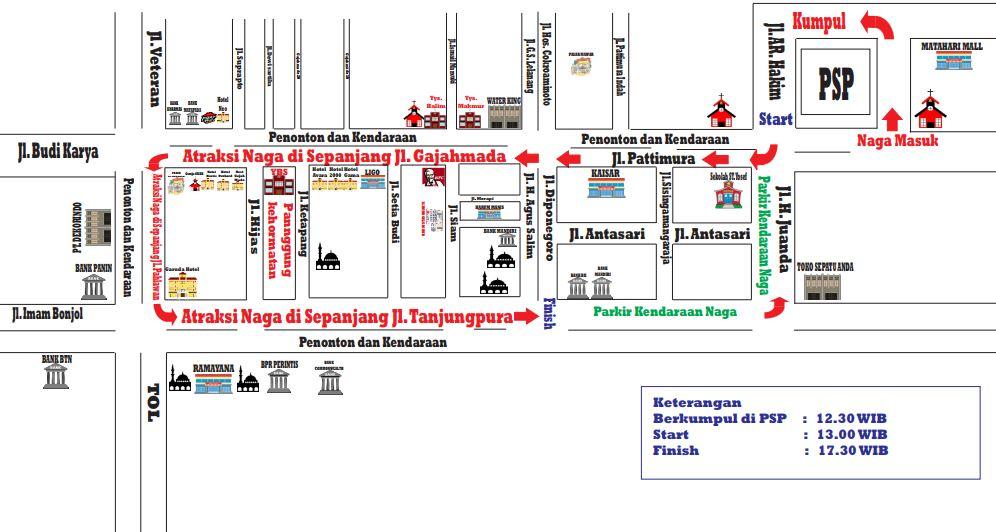 "Yang acara pawai malam itu akan dimulai dari Jalan Juanda, lanjut ke Jalan Pattimura, terus akan berakhir di Jalan Gajahmada," jelasnya.