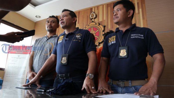 Kanit III Resum dan PPA Sat Reskrim Polresta Pontianak Iptu Antonius Pardamean saat memberikan keterangan pers terkait sepasang suami istri yang ditahan di Mapolresta Pontianak, Jalan Johan Idrus, Pontianak, Kalimantan Barat, Kamis (1/3/2018) siang. Mereka ditahan karena kedapatan mencuri handphone pengunjung pasar malam di Pekan Promosi dan Kuliner Cap Go Meh 2569, pada Rabu malam. TRIBUN PONTIANAK/DESTRIADI YUNAS JUMASANI