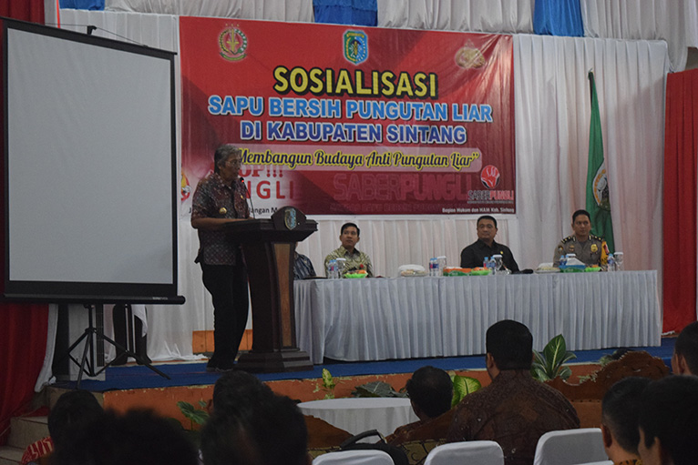 TRIBUNPONTIANAK.CO.ID, SINTANG- Kepala Bagian Hukum Sekretariat Daerah Sintang, Herkolanus Roni menyampaikan bahwa beberapa waktu lalu pihaknya telah melaksanakan Sosialisasi Sapu Bersih Pungli Liar (Saber Pungli) di Gedung Pancasila, Kabupaten Sintang.