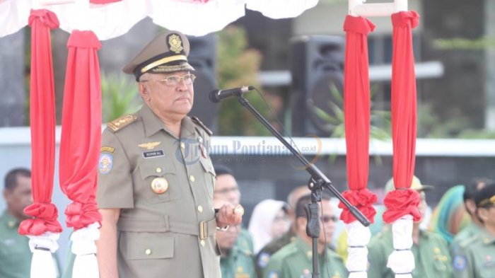 Bupati Kubu Raya, H.Rusman Ali saat menjadi pembina apel memperingati hari jadi Sat Pol PP ke-68, Satlinmas ke-56 serta peringatan hari jadi pemadam kebakaran ke- 99 di halaman kantor Bupati Kuburaya, Kalimantan Barat, Senin (26/3/2018) pagi.Pada kesempatan ini juga digelar apel siaga dalam rangka mengawal pelaksanaan Pilkada serentak tahun 2018 dengan tema "Merujuk Kepada Upaya Peningkatan Kesiap-siagaan Serta Keterlibatan Sat Pol PP, Sat Linmas dan Damkar Sebagai Perangkat Daerah yang Turut Memberikan Dukungan Kelancaran Pelaksanaan Pilkada tahun 2018.