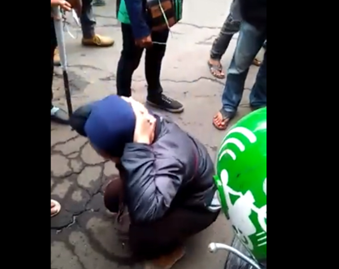 Lantaran tak ikut serta, seorang driver ojek online yang sedang membawa penumpang di sweeping dan diperlakukan tak pantas oleh driver ojek online lainnya.
