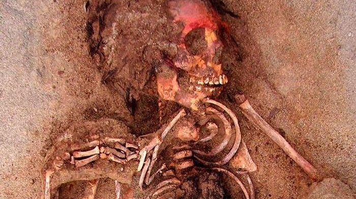 Di situs tersebut, para peneliti menemukan bahwa wajah anak-anak, mulai dari usia lima hingga 14 tahun, telah diolesi dengan pigmen berbasis cinnabar merah (sejenis batu) selama upacara.