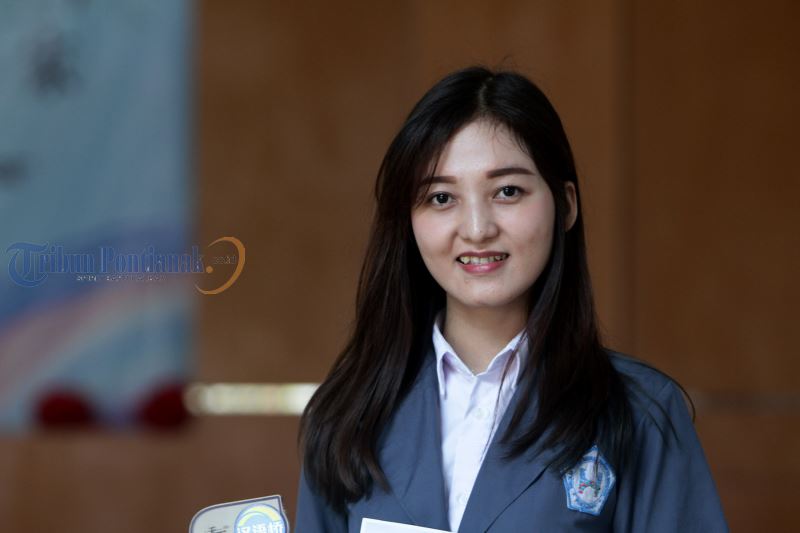 Vianie Yulistia Liady mahasiswi Sekolah Tinggi Bahasa (STB) Harapan Bersama berpose di kampusnya,Jalan A Yani II, Kubu Raya, Kalimantan Barat, Kamis (3/5/2018). Vianie berhasil meraih juara Harapan pada lomba keterampilan bahasa Mandarin "Chinese Bridge" yang digelar PBM Untan Pontianak di gedung STB Harapan Bersama pada 28 April 2018 lalu. TRIBUN PONTIANAK/ANESH VIDUKA
