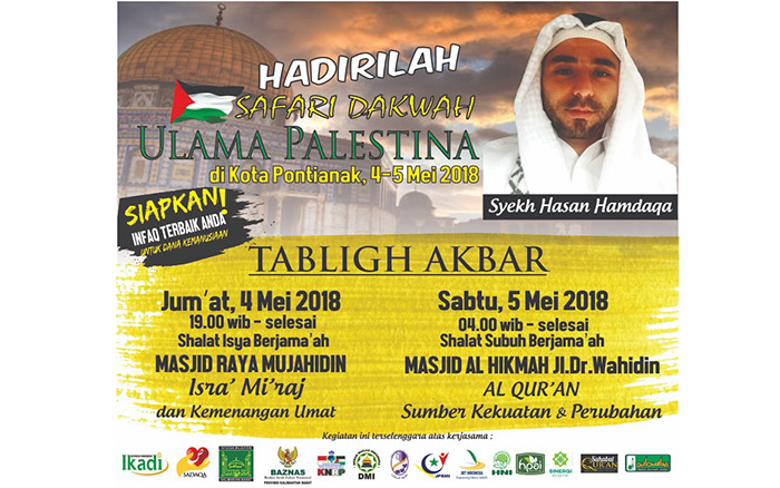 TRIBUNPONTIANAK.CO.ID, PONTIANAK - Syekh Hasan Hamdaqa dijadwalkan akan melakukan safari dakwah jelang Ramadhan 1439 Hijrah di Kota Pontianak.