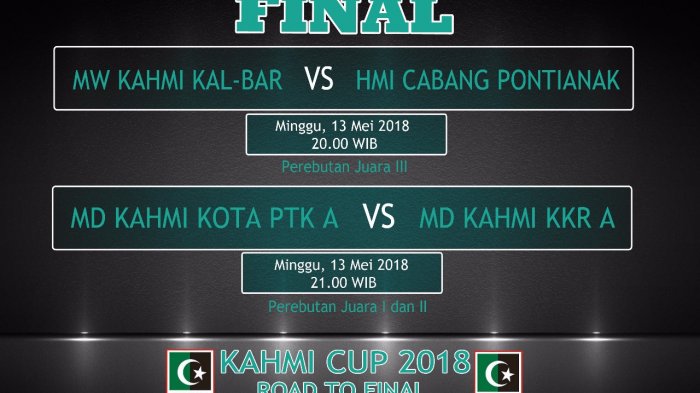 Laga panas akan tersaji antara MD KAHMI KKR A vs MD KAHMI Kota Pontianak A yang akan memperebutkan juara 1. Sedangkan perebutan juara 3 antara tim gaek MW KAHMI Kalbar berhadapan dengan tim muda HMI Cabang Pontianak.