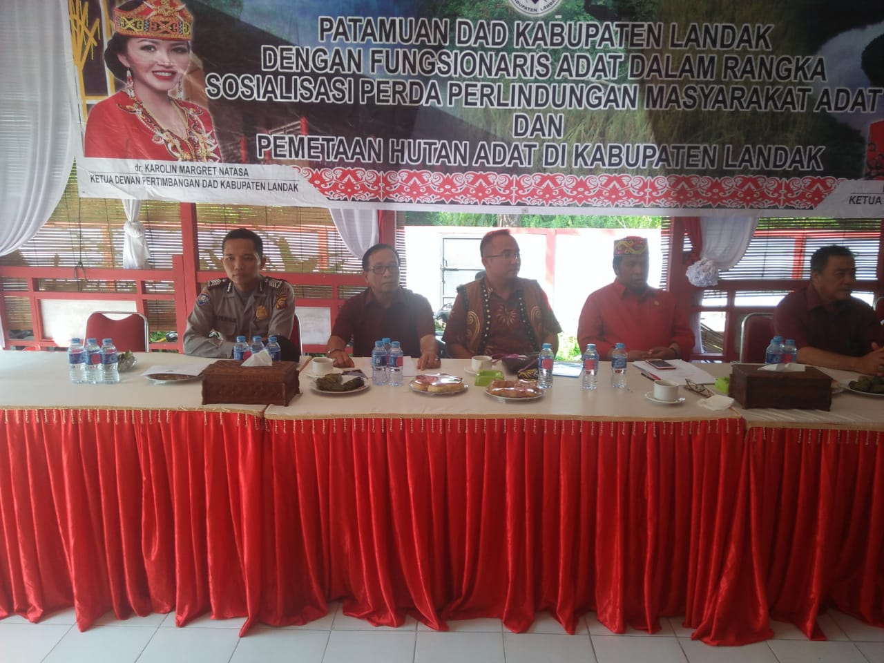 TRIBUNPONTIANAK.CO.ID, LANDAK - Dewan Adat Dayak (DAD) Landak, melaksanakan Sosialisasi Perda Perllindungan Masyarakat Adat dan Pemetaan Hutan Adat di Kabupaten Landak pada Kamis (7/6/2018) sore.