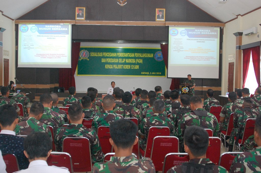Kegiatan sosialisasi ini dimaksudkan sebagai upaya Preventif dan Antisipatif untuk mencegah Prajurit Korem 121/Abw dan keluarganya dari penyalahgunaan narkoba yang kian memprihatinkan dan semakin meningkat dari waktu ke waktu, baik secara kuantitas maupun kualitas.