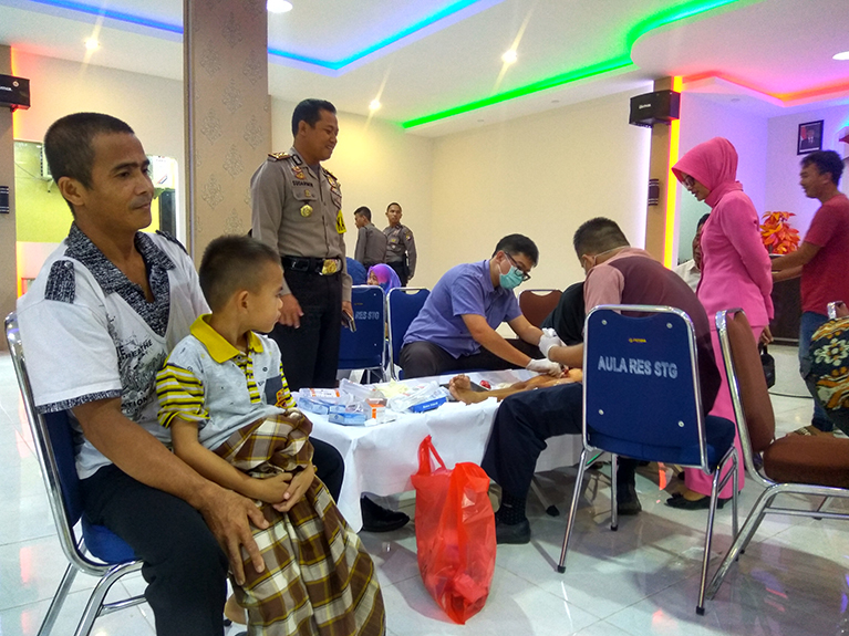 TRIBUNPONTIANAK.CO.ID, SINTANG - Polres Sintang melaksanakan kegiatan Bakti Sosial Sunatan Massal yang diikuti oleh sebanyak 32 orang anak dalam rangka peringatan Hari Bhayangkara ke-72 Polres Sintang di Balai Kemitraan Polres Sintang, Rabu (4/7/2018) pagi.