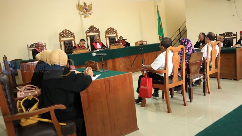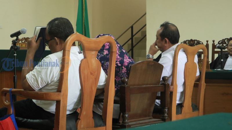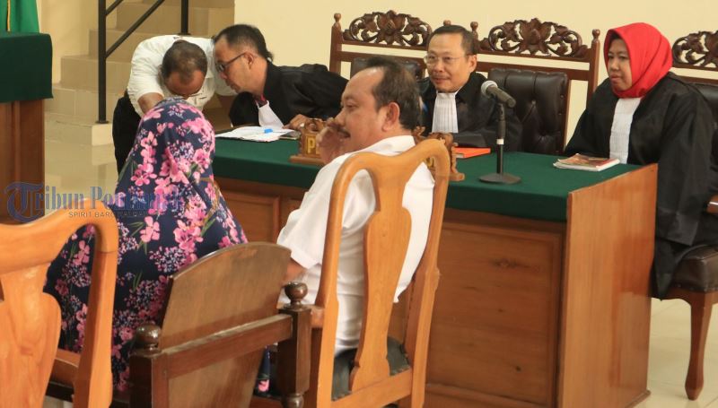 Sidang pembacaan putusan oleh Majelis Hakim atas dugaan Tipikor proyek pengadaan alat kesehatan (Alkes) Rumah Sakit Umum Daerah (RSUD) Sultan Syarif Mohamad Alkadrie Kota Pontianak Tahun 2012 digelar di Pengadilan Tipikor Pontianak, Jalan Uray Bawadi, Pontianak, Kalimantan Barat, Kamis (5/7/2018) siang. Yekti Kusumawati yang merupakan Pejabat Pembuat Komitmen (PPK) dan Direktur Utama PT Bina Karya Sarana Sugito masing-masing divonis tiga tahun penjara potong masa tahanan, sedangkan pemilik PT Bina Karya Sarana sekaligus Direktur PT Mitra Bina Medika Suhadi divonis enam tahun penjara potong masa tahanan. TRIBUN PONTIANAK/DESTRIADI YUNAS JUMASANI