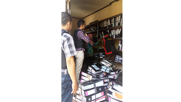 Setelah hampir 7 jam, penyidik pun mulai mengeluarkan puluhan bundel dokumen dari ruangan tersebut.