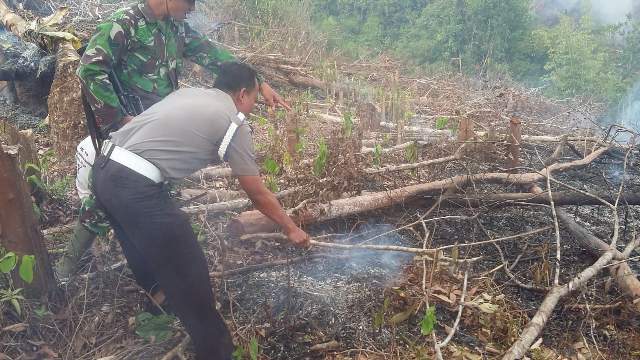TRIBUNPONTIANAK.CO.ID, SANGGAU - Jajaran Polsek Bonti dan Koramil Bonti mengecek titik hotspot di wilayah kecamatan Bonti, kabupaten Sanggau, Kamis (26/7). Dari hasil pengecekan ditemukan dua titik hotspot.