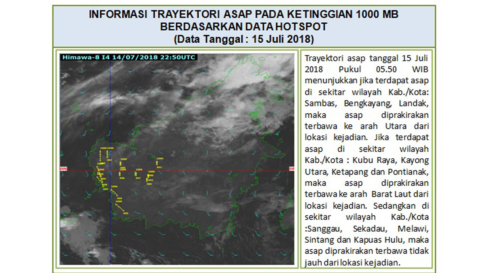 TRIBUNPONTIANAK.CO.ID, PONTIANAK - Setelah dilanda hujan dengan intensitas ringan hingga sedang di sejumlah wilayah di Kalbar titik api cendrung mengalami penurunan dibandingkan hari sebelumnya, Hari ini Senin (30/7/2018) BMKG Stasiun Meteorologi Supadio Pontianak Pontianak memantau delapan titik panas di Seluruh Kalbar.