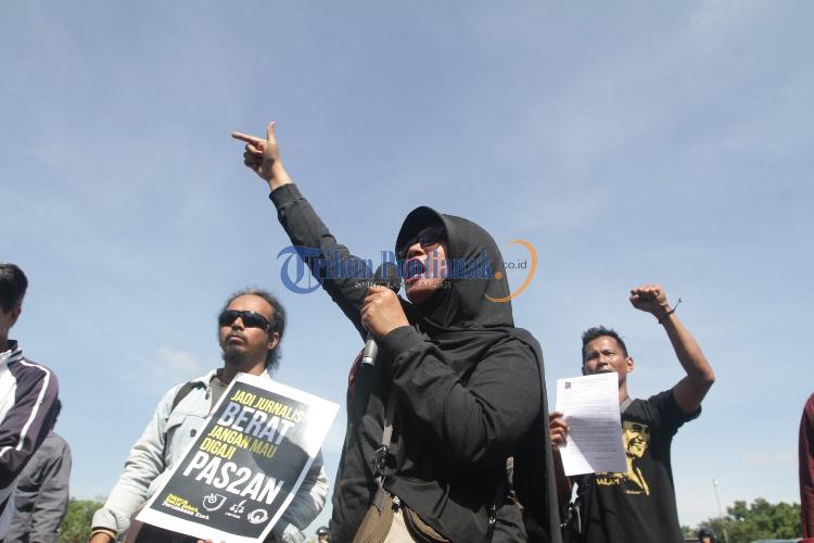 TRIBUNPONTIANAK.CO.ID - Aliansi Jurnalis Independen (AJI) Kota Jambi mengecam tindakan oknum pasukan pengamanan api obor Asian Games terhadap Suci Annisa, jurnalis Kompas TV Jambi.
