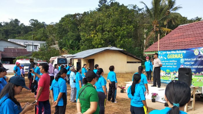 TRIBUNPONTIANAK.CO.ID, LANDAK - Puskesmas Simpang Tiga Kecamatan Menyuke Hulu melaksanakan senam sehat dalam rangkaian acara Pencanangan Gerakan Masyarakat Hidup Sehat (Germas) pada Jumat (10/8/2018).