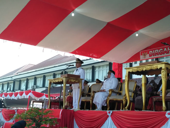 Sesaat setelah upacara selsai di laksanakan, Bupati Sambas yang bertindak sebagai inspektur upacara memberikan beberapa pesannya terkait HUT Republik Indonesia Ke-73 kali ini.
