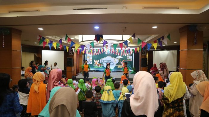 Mochammad Awam Prakoso sukses menyihir peserta anak dalam Dongeng Akbar yang digelar Hotel Santika, di Ballroom Santika, Lantai 5.