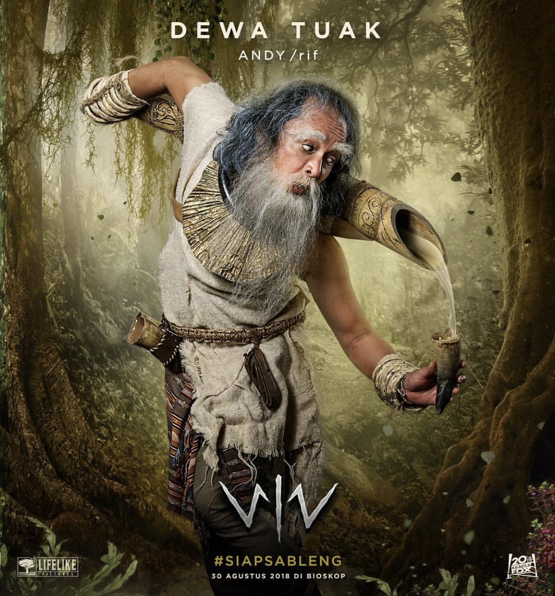 Biasanya tampil dengan rambut panjang tergerai ala roker, untuk memerankan Dewa Tuak, Andy tampil tua dengan jenggot putih panjang hingga ke dada.